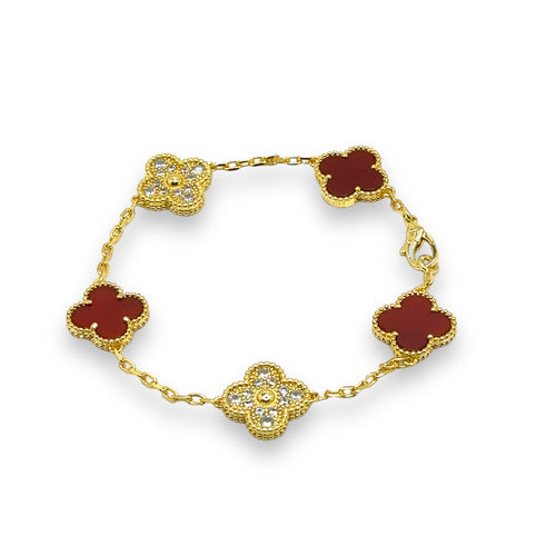 Dorada y roja pulsera de flor